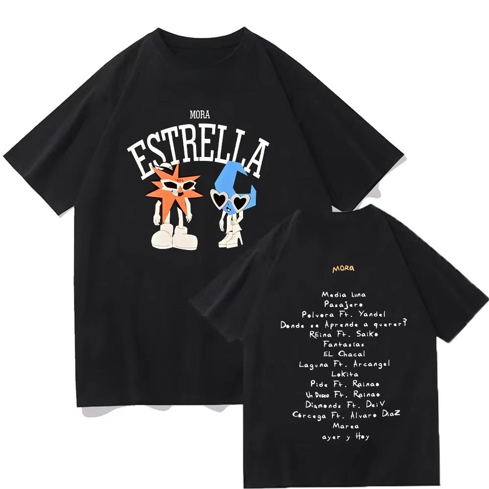 2026 Mora Estrella and Media Luna Graphic Tshirt Rapper Mora Merch T Shirts Women Men Cotton High Street Tee Short Sleeve top