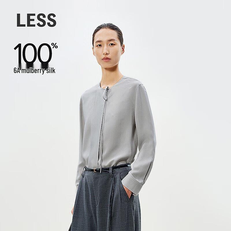 LESS 2025 Spring Mulberry Silk Round Neck Long Sleeve Shirt