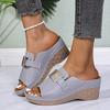 Women'S Sandals Wedge Heel Slippers Plus Size Casual And Fashion With Metal Open Toe Design Simple Sandal For Woman High Arch