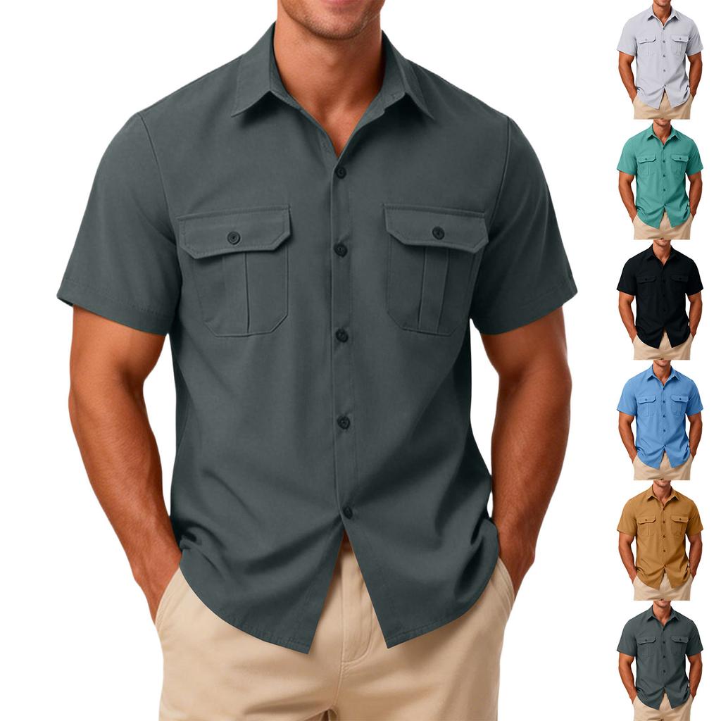 Camisa de Trabajo Casual para Hombre de Manga Corta con Cuello para Exteriores