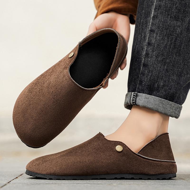 New Fashion Men Leather Flats Shoes Comfortable Man Casual Shoes Slip on Male Outdoor Walking Shoe Split Leather Driving Shoes