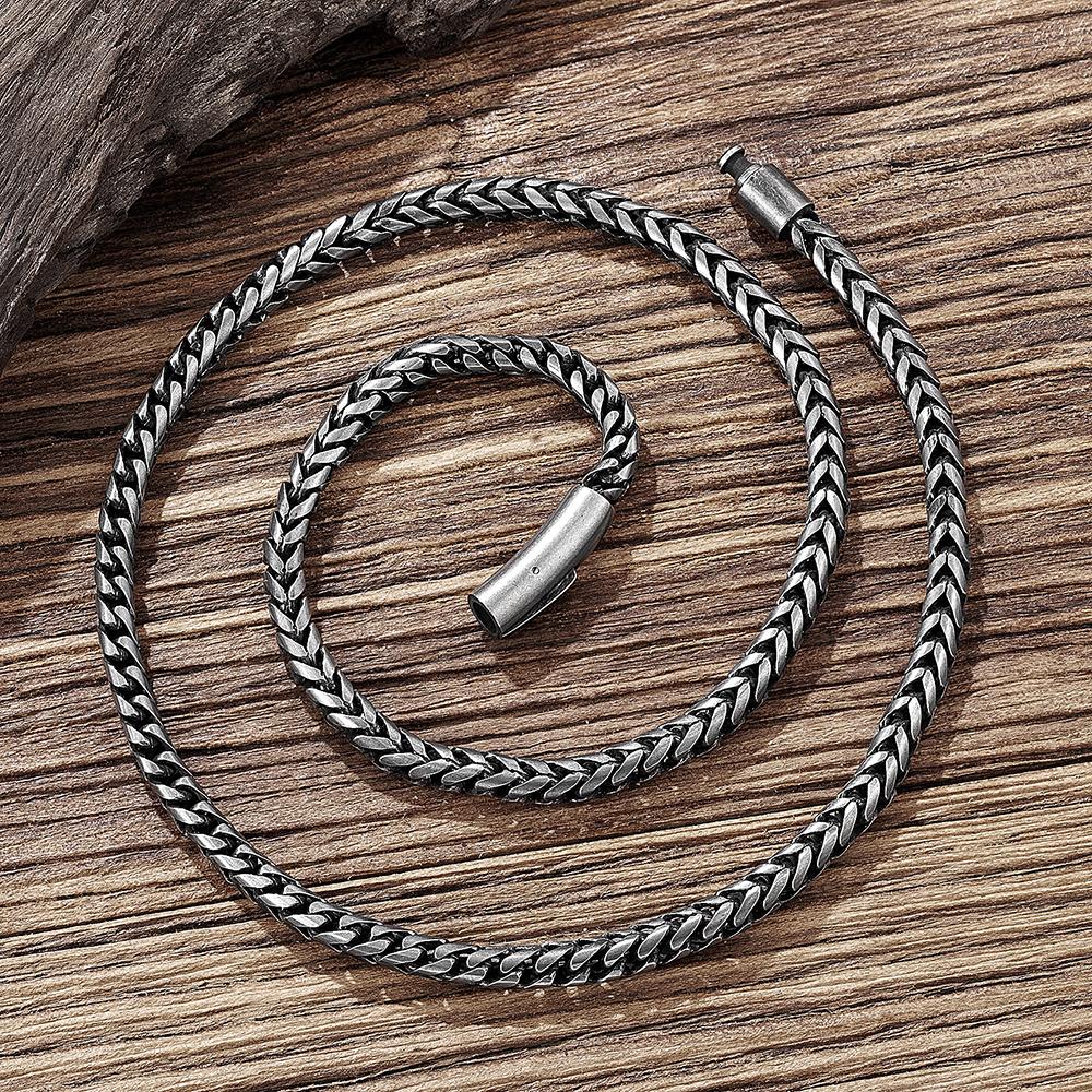Vintage Oxidized Cuban Link Chain Necklace for Men Stainless Steel Punk Rock Style Foxtail Chain Unique Male Jewelry Gift