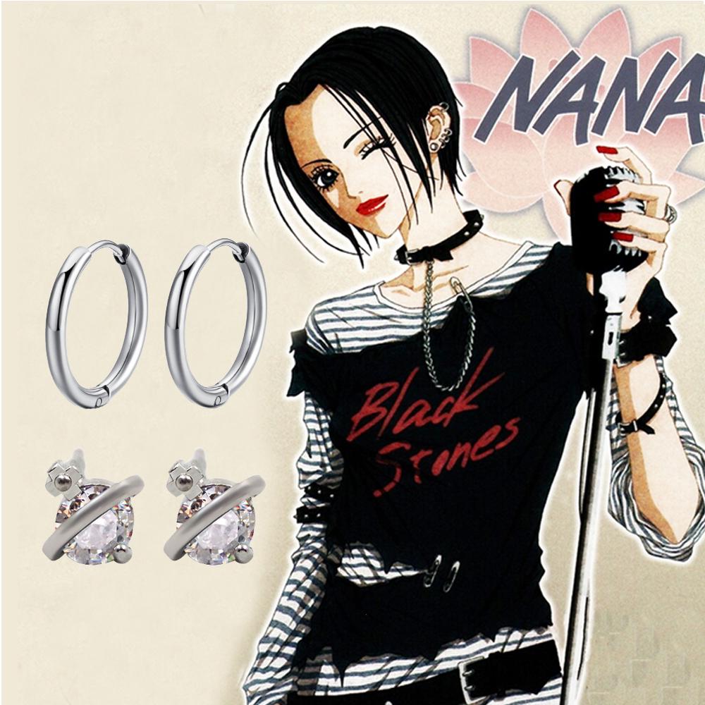 4 Piezas/Set Pendientes Anime Oosaki Nana de Presión Punk Cristal Saturno Piercing Pendientes Set para Mujeres Joyería