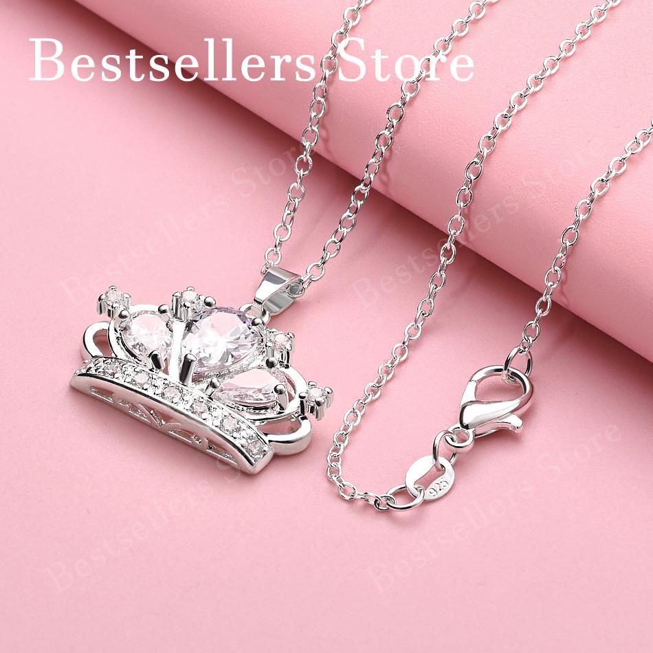 925 silver 16-30 inch luxury crown zircon pendant necklace for women's fashion wedding accessories and jewelry
