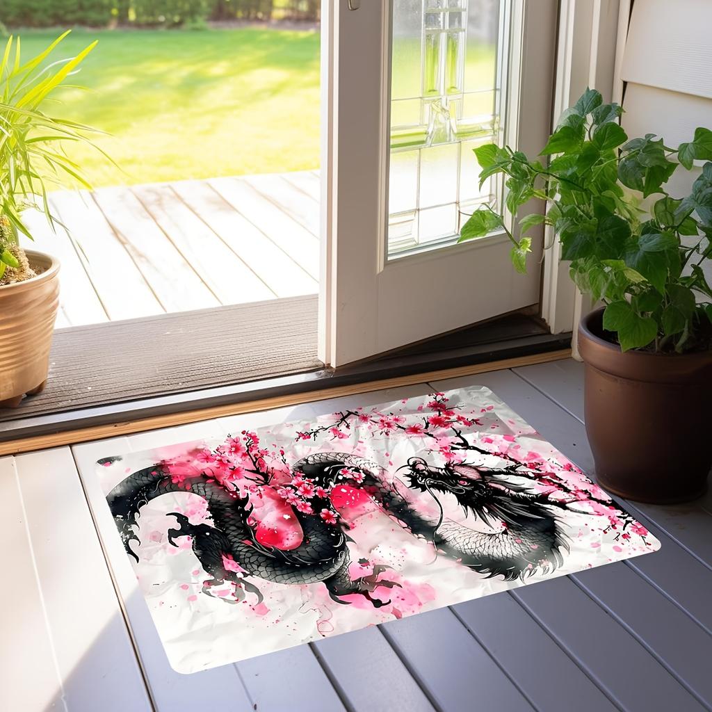 Cherry Blossom Dragon Rug Velvet Flannel Printed Floor Mat Asian Art Design Decorative Carpet Living Room Home Decor