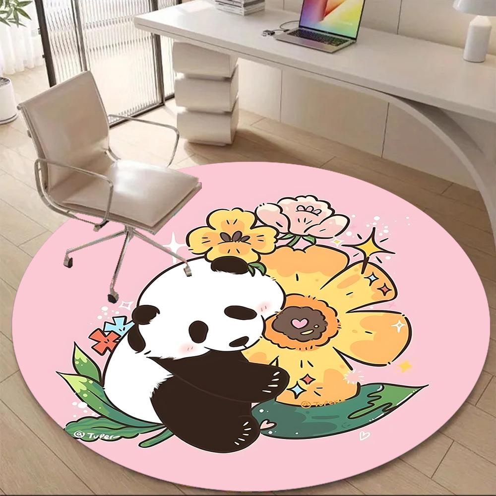 1pc Panda Bloom Office Round Area Rug, Indoor Mat Suitable ForOffice, Under Office Chairs Bedroom Living Room Home Decor D002
