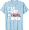 Eat Sleep Trains Repeat Graphic Tee Funny Railroad Lover Casual Short Sleeve TShirt