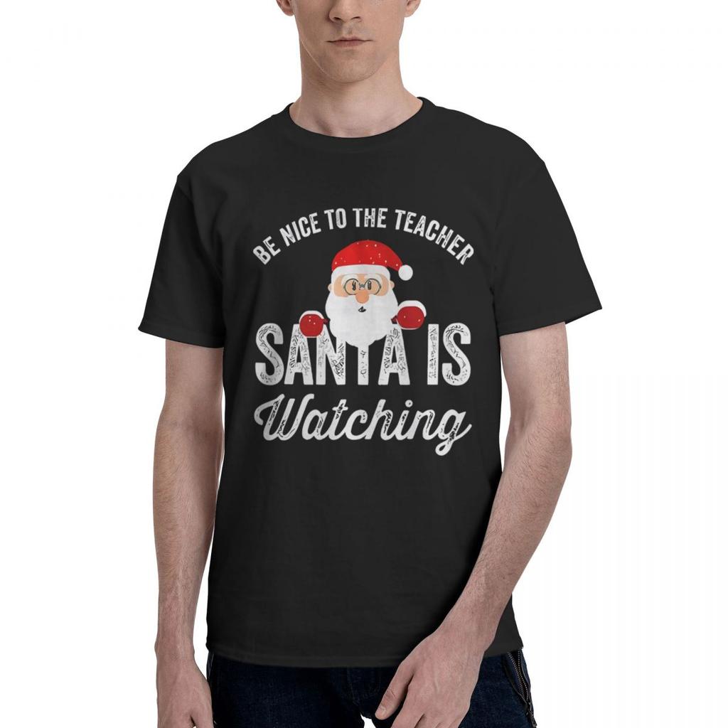 Be Nice To The Teacher Santa Is Watch 100 Cotton Casual Breathable Confortable Shirt Mens Clothing Brands Clothes Men