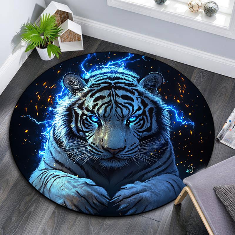 Electric Tiger Round Area Rug,Carpet Rug for Living Room Bedroom Sofa Playroom Decor,Non-slip Floor Mat