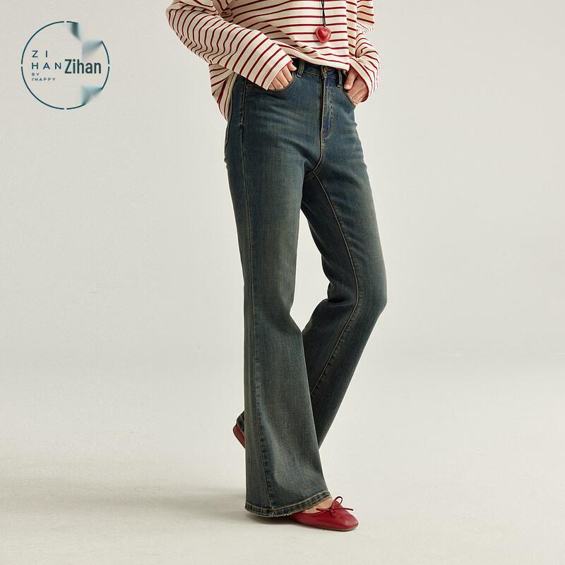 ZIHAN Women's Retro Slim Flare Denim Pants