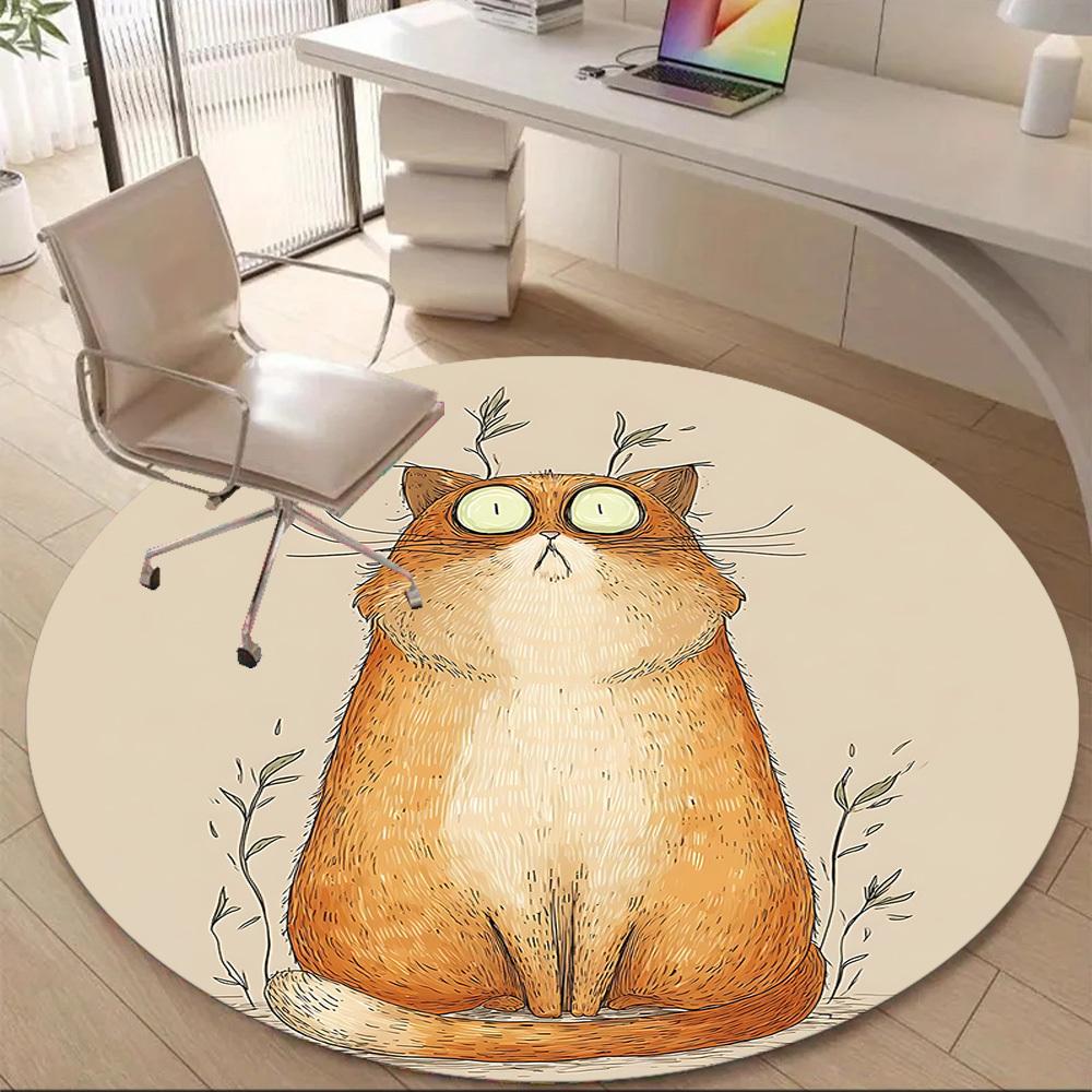 1PC Cat Whiskers Office Round Area Rug, Mat Suitable ForOffice, Under Office Chairs Bedroom Living Room Home Decor, Room Deco