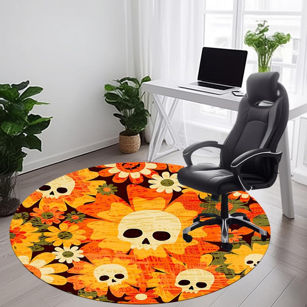 1pc Skull Flowers Office Round Area Rug, Mat Suitable For Office, Under Office Chairs Bedroom Living Room Home Decor, Room Deco