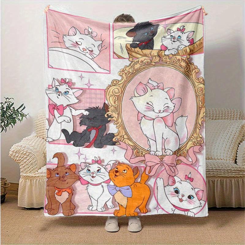 1pc, Marie Cat (3) Home Decor Flannel Blanket Perfect Gift for Bedroom, Living Room, Travel, Camping, Car