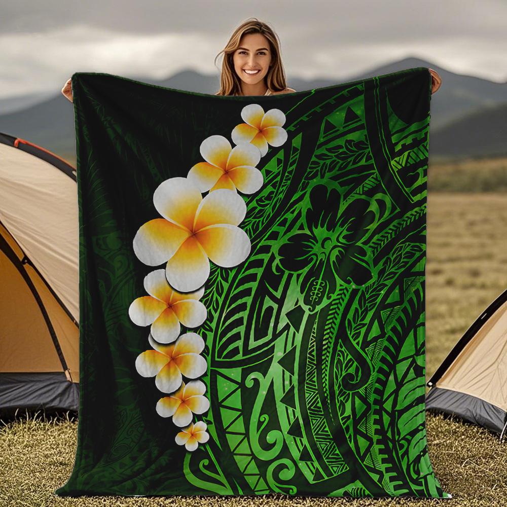 Green Polynesian pattern Blanket for Sofa Bed Travel Camping Living Room Office Conditioning Blanket for All Seasons Gifts