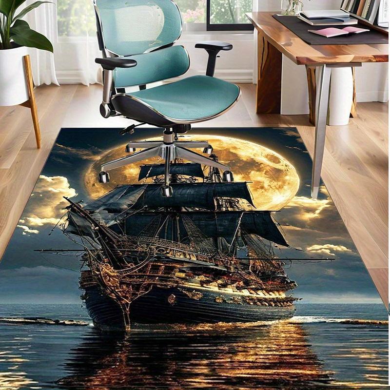 Alfombra de Barco Pirata en Noche de Luna Llena Suelo de dormitorio Interior con temática náutica Alfombra antideslizante se puede lavar a máquina