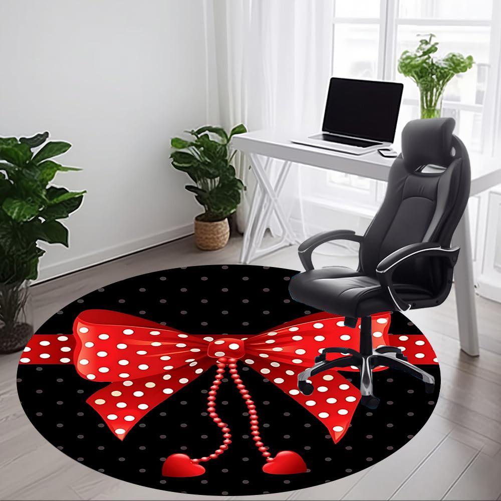 1pc Polka Dot Bow Office Round Rug, Carpet for Office, Gaming, Lightweight Round Floor Mat yy260208035