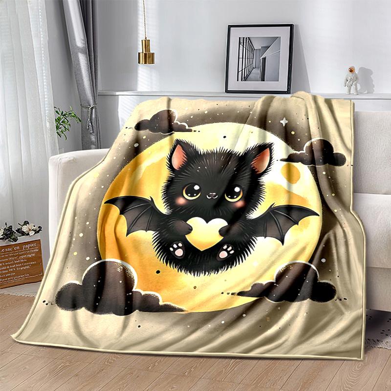 1pc Bat Cute Cartoon Design Design Blanket Seasonal Home Decorative Throw for Room, Gift Idea, Living Room, Travel, Camping, Car Blankets