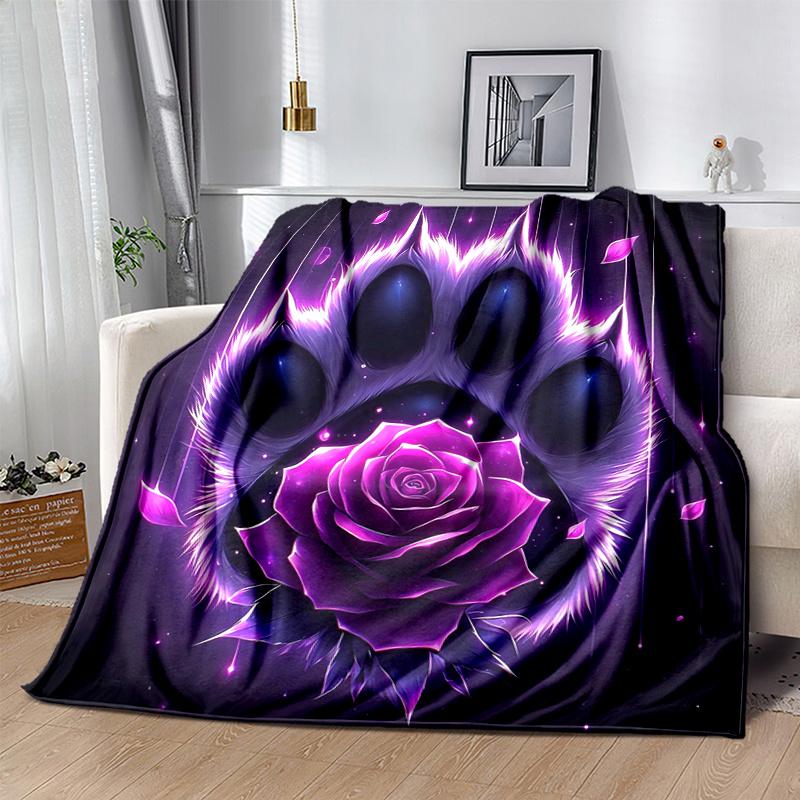 1pc Cat's Paw Flowers Design Blanket Cartoon for Home Decor, Gift Idea, Living Room, Travel, Camping, Car Blankets