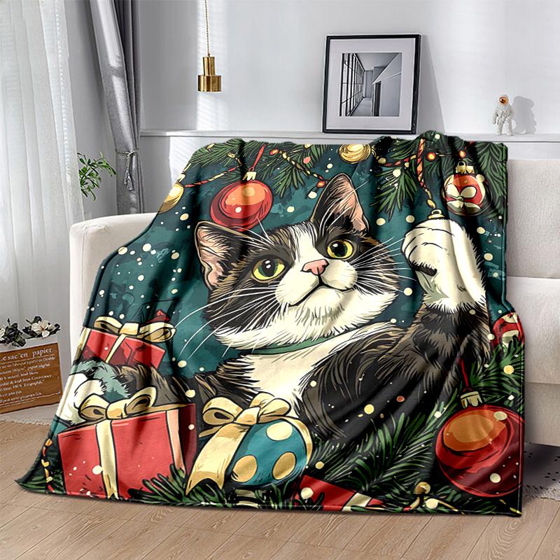 1pc Christmas Cat Blanket Soft Warms, Living Room, Travel, Camping, Car Blankets