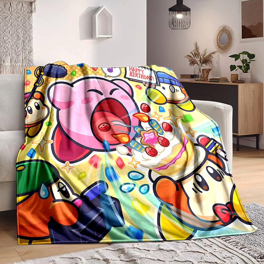 1pc Kirby Party Soft Skin-Friendly Flannel Blanket with Digital Printing, Various Sizes Available for Family, Friends, Birthday