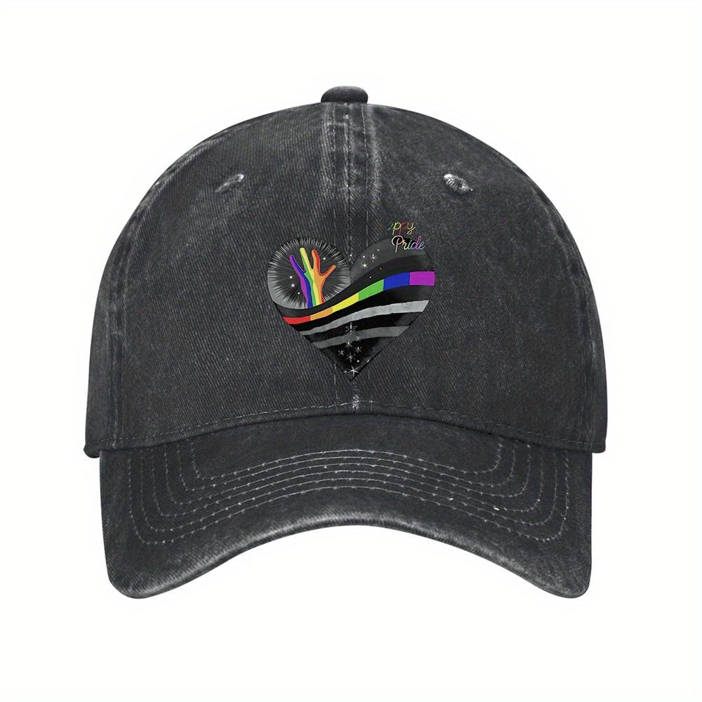 Asexual Pride Heart Rainbow Hand Denim Baseball Cap Adjustable Vintage Washed Cowboy Hat for Men Women Casual