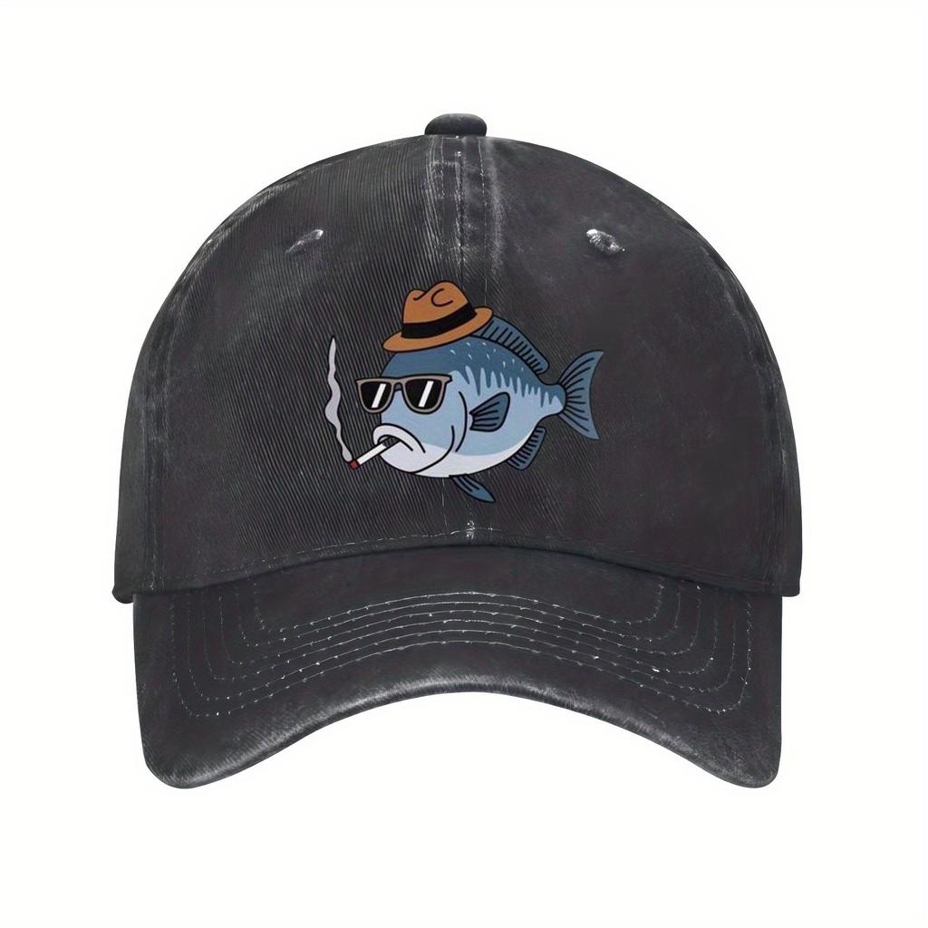 Cool Smoking Fish with Hat and Sunglasses Baseball Cap Funny Animal Print Casual Outdoor Sun Hat Unisex