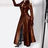 Stylish Long Coat for Women S-3XL: Glossy PU Leather with Lapel & Belt, Versatile Open Front for Street Style & Vacation
