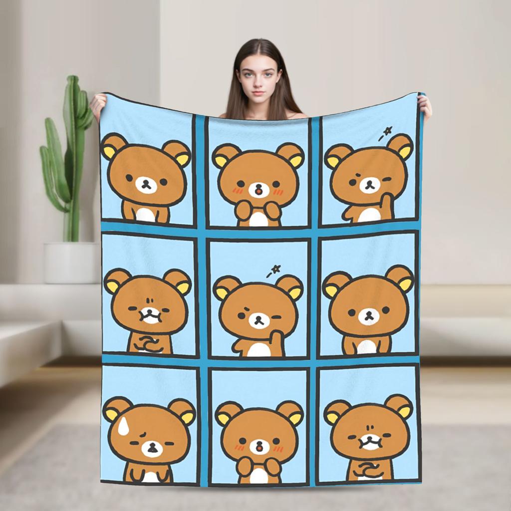 Cute Bear Rilakkumas Flannel Blanket Winter Warm Throw Blanket for Kids Adult Bedroom Funny Bedspread Sofa Bed Cover