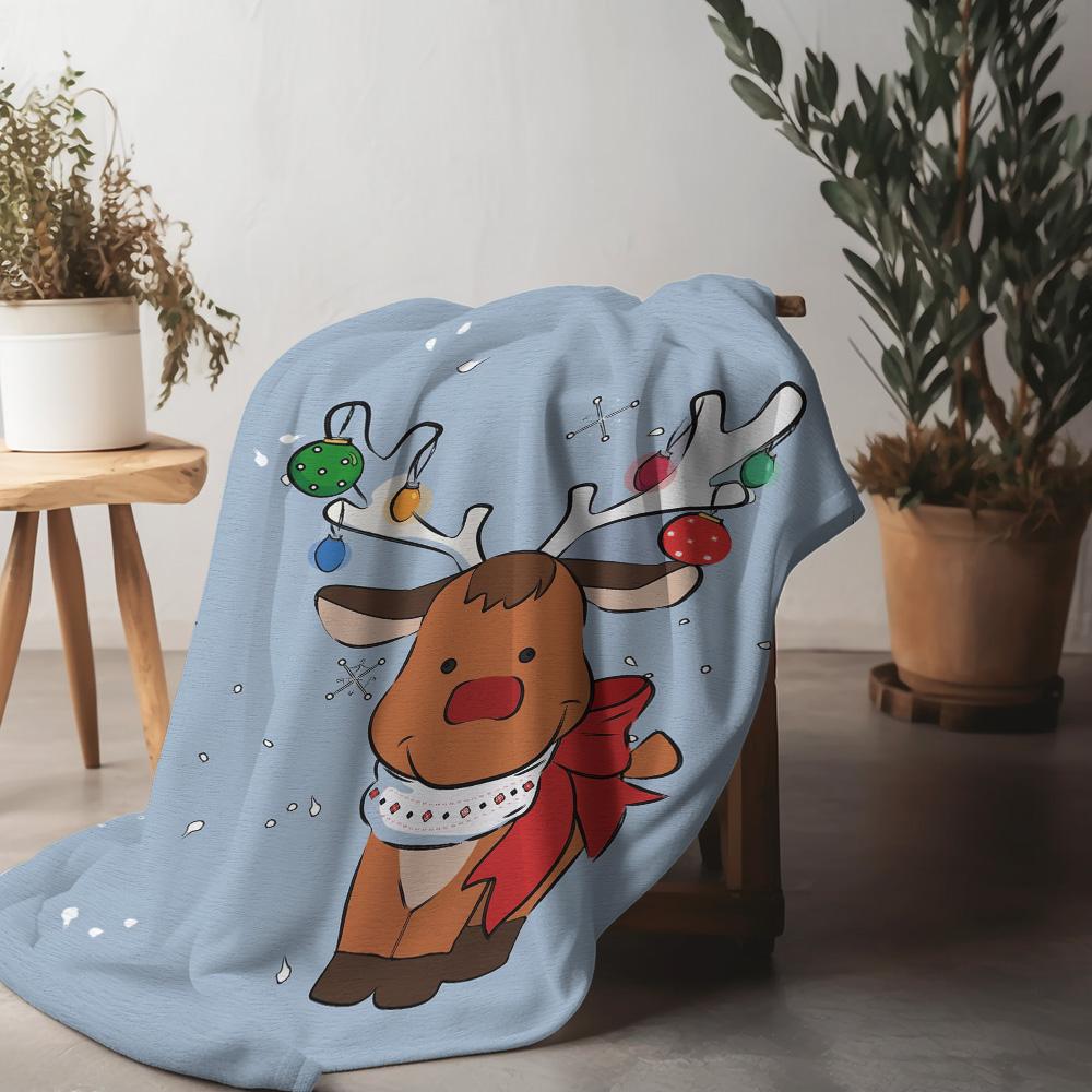Tuniu Cute Christmas Reindeer Fleece Blanket for Sofa Bed Room Decoration Warm Soft Throw Blanket