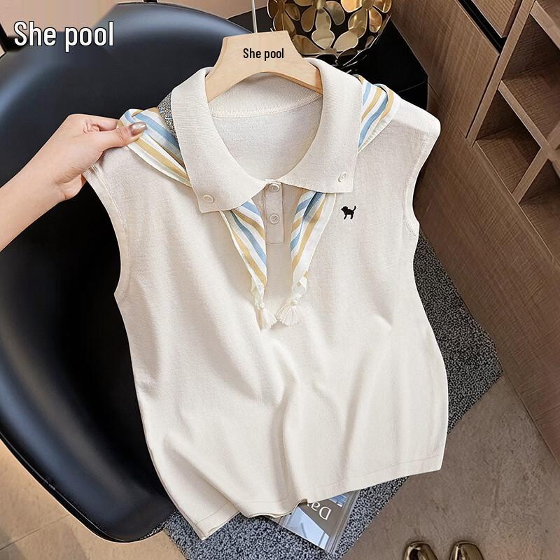Elegant French Style Sleeveless Lapel Knit Top