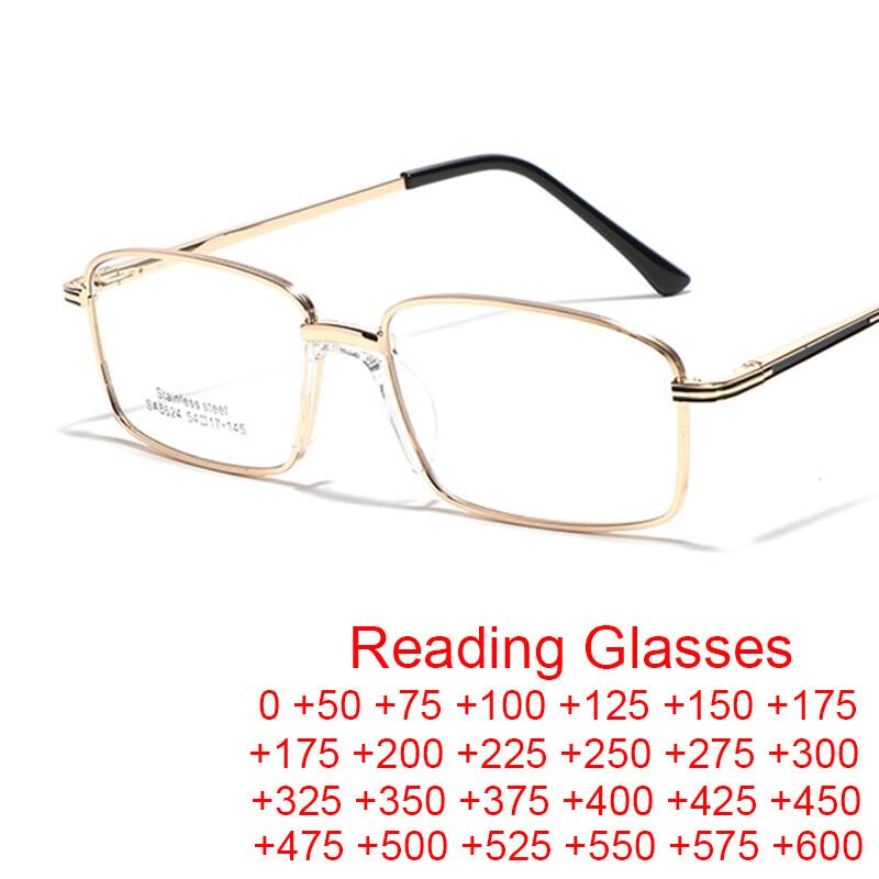 Y2K Harajuku Presbyopic Glasses Metal Square Reading Glasses Transparent Blue Light Blocking Eyewear for Men Business