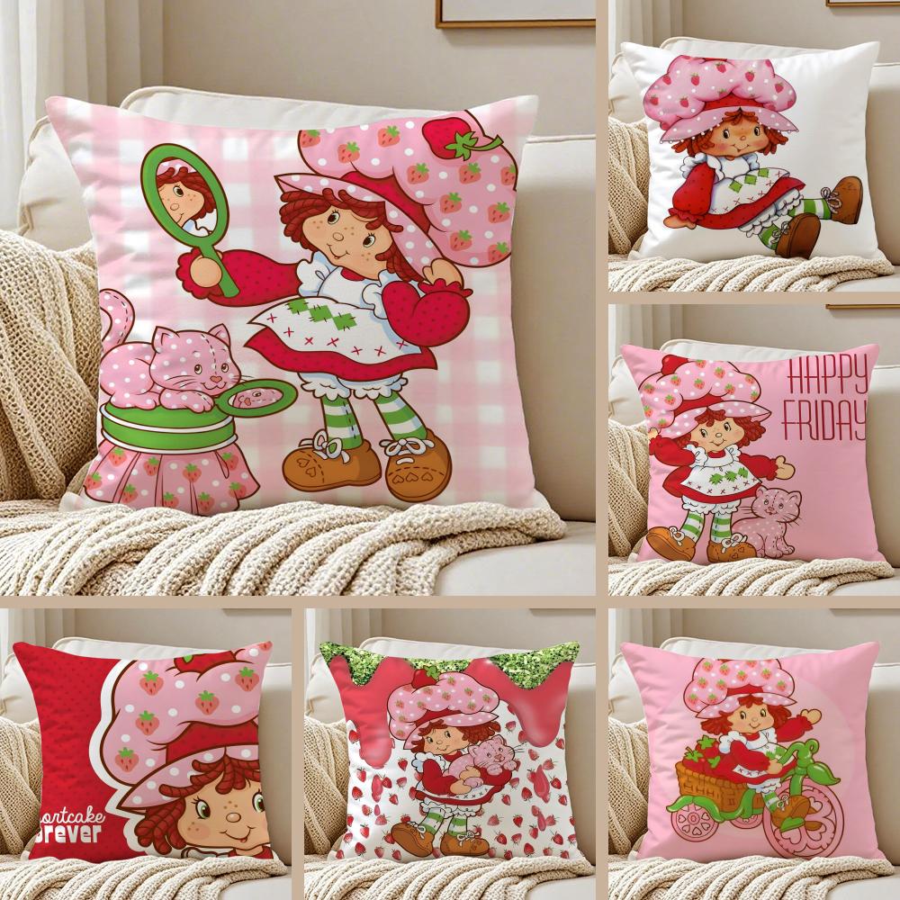S-Stawberry Shortcake Cushion Cover Silky Short Plush Double-Sided Printed Pillow Case for Sofa All Seasons Home Decor Gift