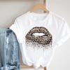 Women Tee Top Summer Fashion Print T-shirt O-neck Leopard Trend Lip Lady Female Clothing Casual Short Sleeve Graphic T-shirt