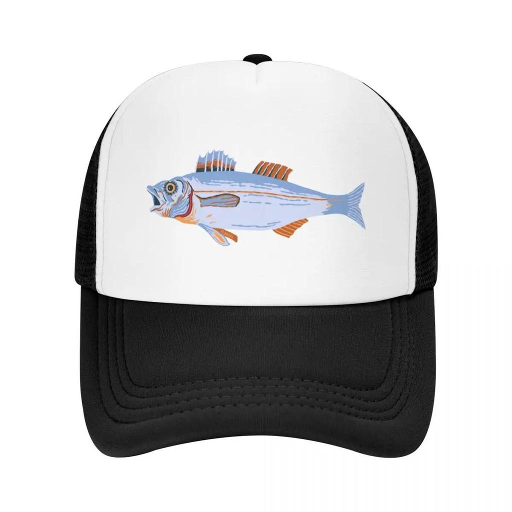 Fish Illustration Trucker Hat Breathable Polyester Outdoor Fishing Adjustable Cap Adult
