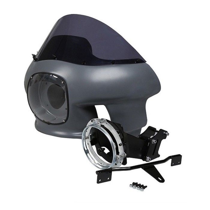 Carénage avant - Harley-Davidson Dyna 2006-2017 - Pare-brise teinté - Support phare 7" - Cache phare non peint