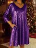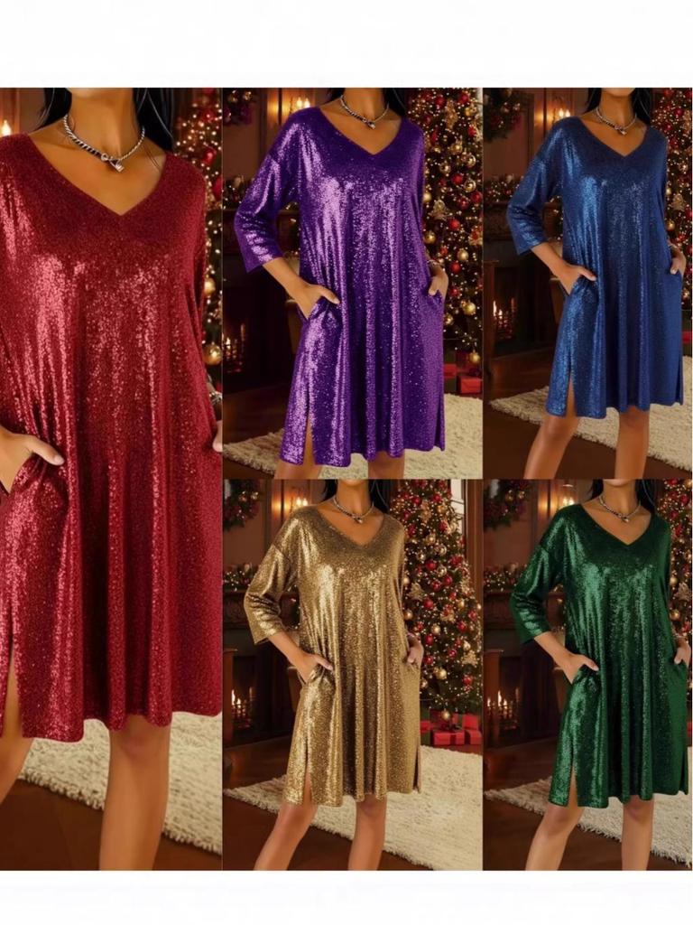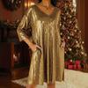 Vestido de Manga Nueve Puntos con Escote en V Holgado Estampado en Caliente con Dobladillo Dividido Transfronterizo 2025