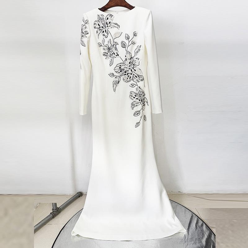 High Street Fashion 2026 Early Spring Elegant Evening Gown with Heavy Embroidery and Rhinestone Detailing