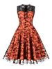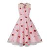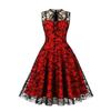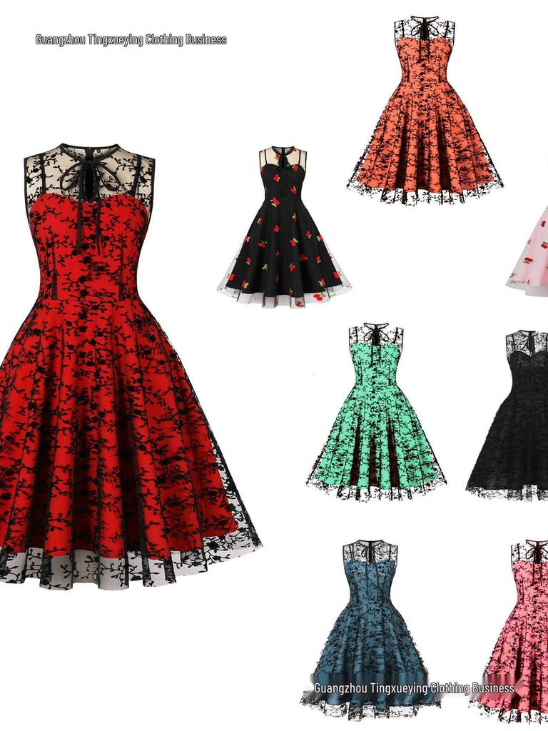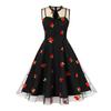 Women's Christmas Mesh Embroidered Midi Dress with Waist-Cinching and Sleeveless Design