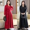 Stay cozy and stylish during the winter months with this sophisticated dress featuring 5-point sleeves. Crafted from high-quality polyester, it offers both comfort and durability. The dress incorporates knitted fabric accents for added texture and warmth, making it an ideal choice for colder weather. Its solid color design allows for versatile styling options, perfect for any occasion.