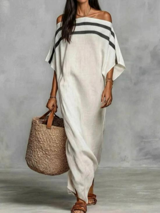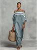 Vestido largo casual de hombros descubiertos con bloques de color 2026 para vacaciones