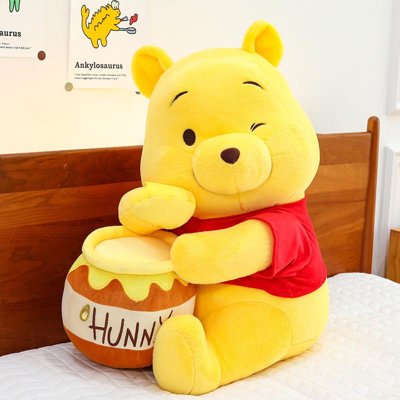 This plush Winnie the Pooh teddy bear is crafted from ultra-soft short-pile plush and filled with high-quality PP cotton for a plush feel. Available in sizes from 12 to 35 inches, it features a charming honey jar design that appeals to children and collectors alike. Ideal for birthdays or as a cozy companion, it supports gentle hand washing for easy maintenance.
