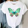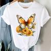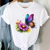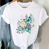 (Asian Size) Printed Clothing Top Fashion feather flower 90s Short Sleeve T-shirts Women Graphic Tee Lady Female Casual T Shirt Tees