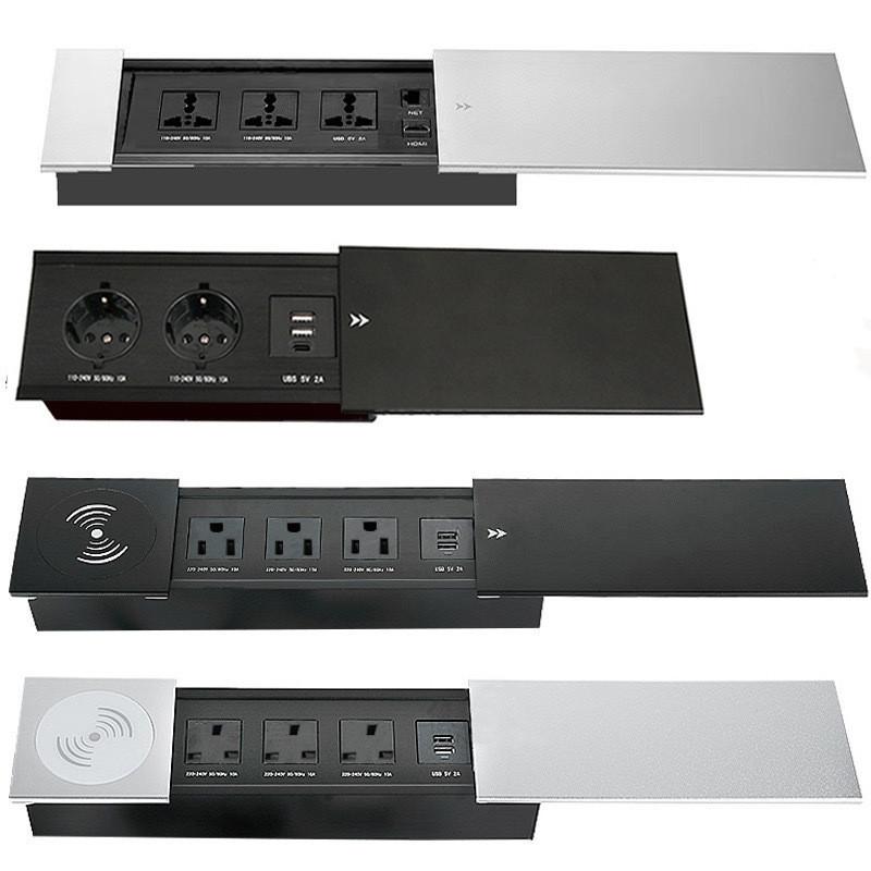 Carga Inalámbrica Negro: 2 Enchufes Universales Extranjeros+Puerto Doble A+C+HDMI+Red+Buen Cable de 1.7 Metros+Sellado de Caja Inferior,