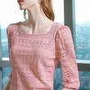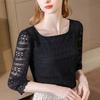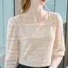 Layer Early Spring New Style 3/4 Sleeve One Shoulder Hollow Out Crochet Floral Small Shirt Slim Top Women