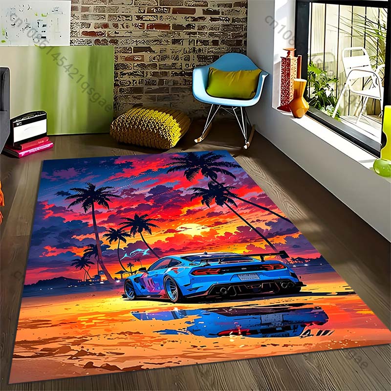 1PC Cars in The Sunset Printed Carpet for Living Room Bedroom Bedside Bathroom Floor Mat Area Rugged Sofa Mat Home Decor