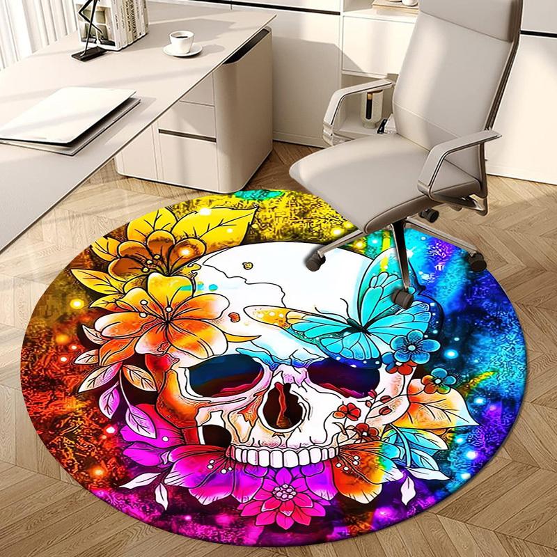 1pc Colorful Skull with Flowers and Butterfly Round carpet, Made of Polyester,Perfect for Decorating Office Chairs, Living Rooms fplt701
