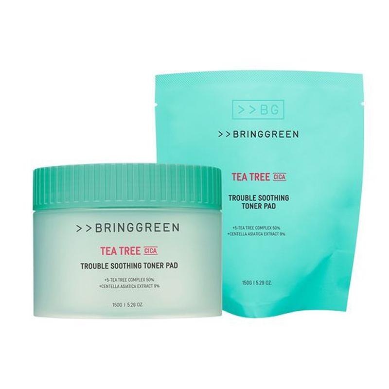 BRING GREEN Tea Tree Cica Trouble Soothing Toner Pads Calming & Exfoliating Pad Set 90 Sheets + 90 Sheets Refill