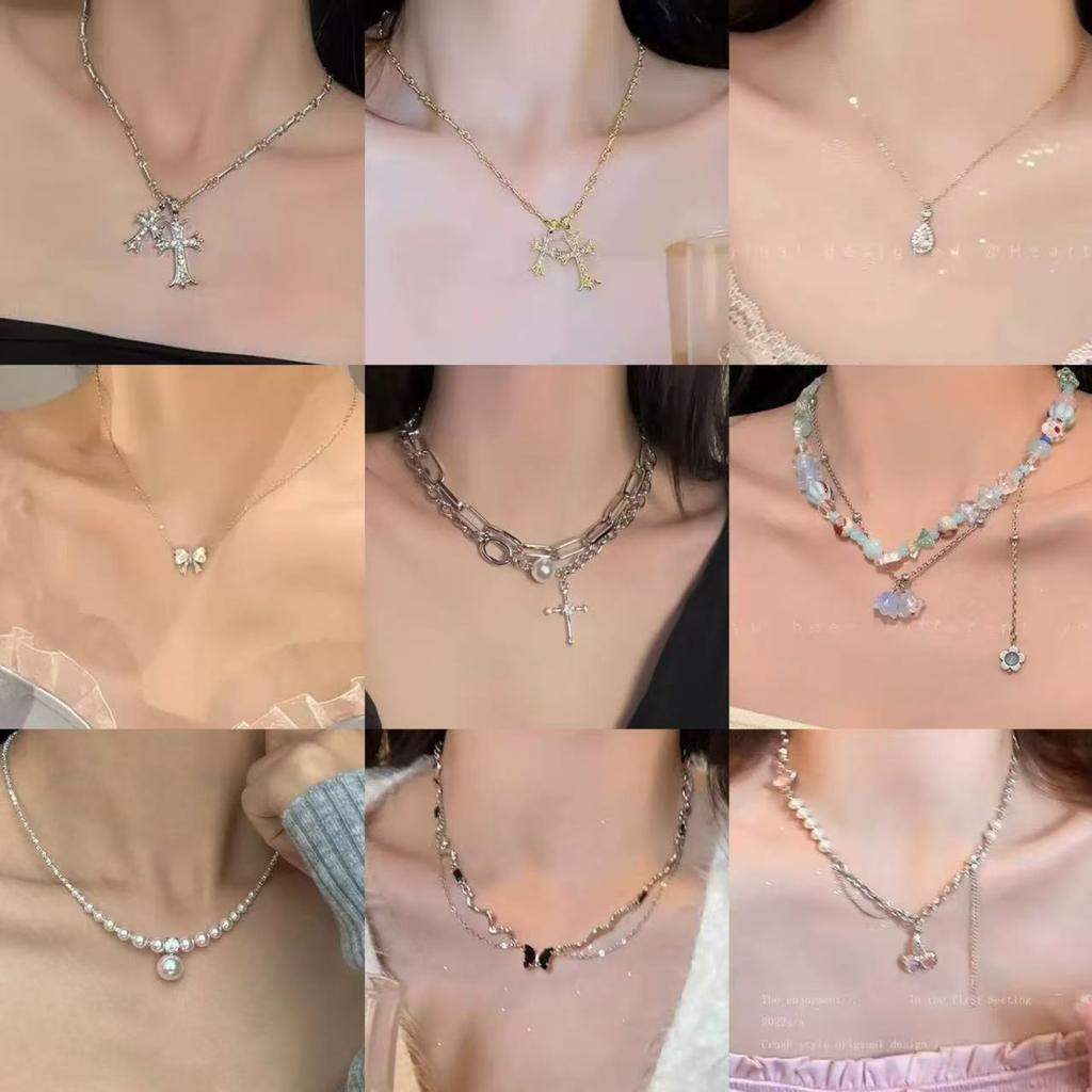 New light luxury creative high-end simple zircon bow necklace small fresh bow women's necklace
