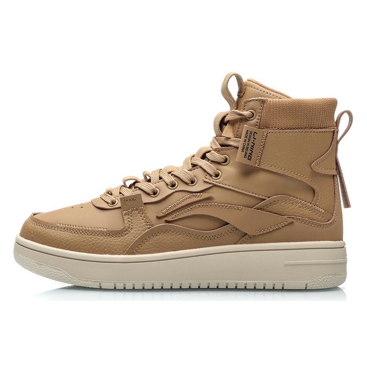LiNing Qingchao Coverage Slip Resistant Cushioning Abrasion Resistant High Top Skateboard Shoes Men's Brown White AGCP215-3
