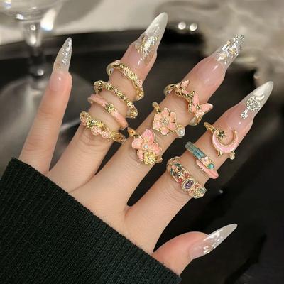 Serie de Anillos Mariposa Moda Estrella Temperamento Elegante Amor Gema Incrustada Conjunto de Anillos Vintage